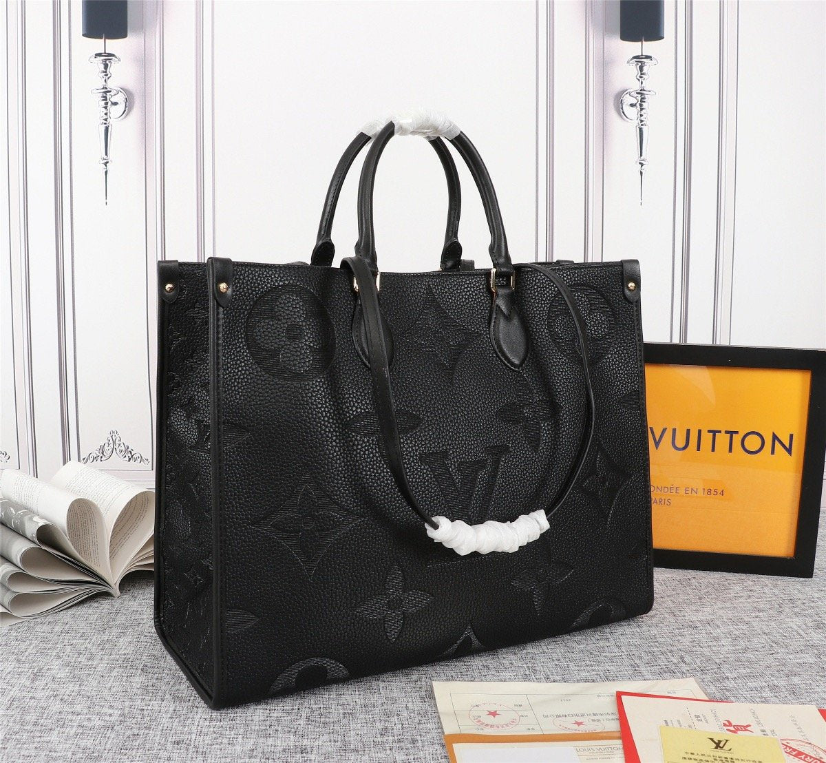 Includes Shipping bags, dustbag sleeper, care manual, booklet, tag.