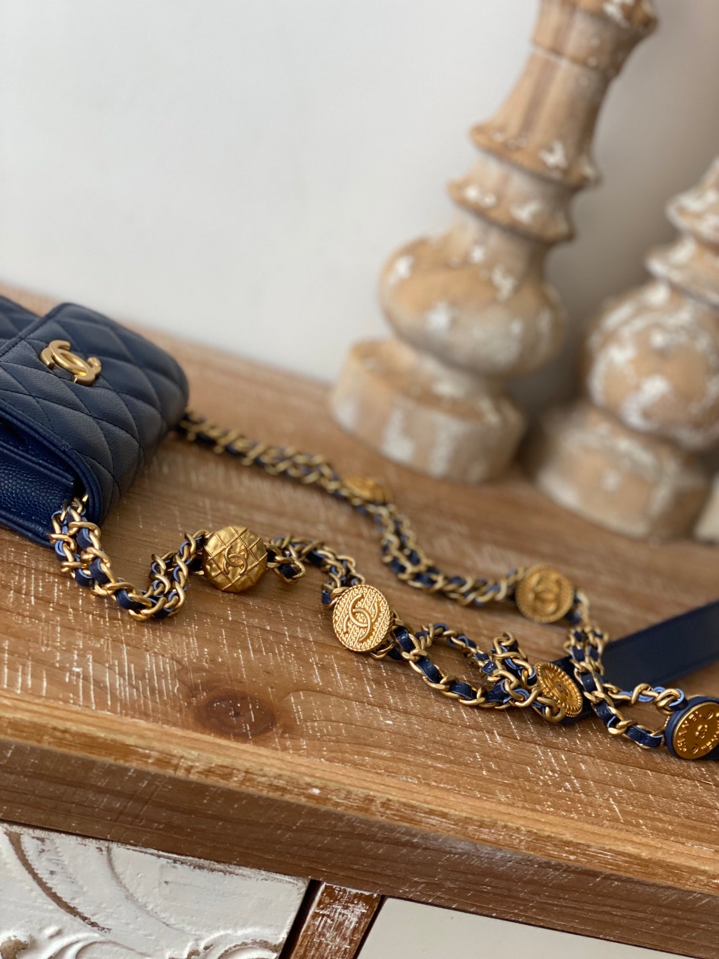 CC Clutch With Chain Blue For Women, Women’s Bags 4.8in/12.3cm