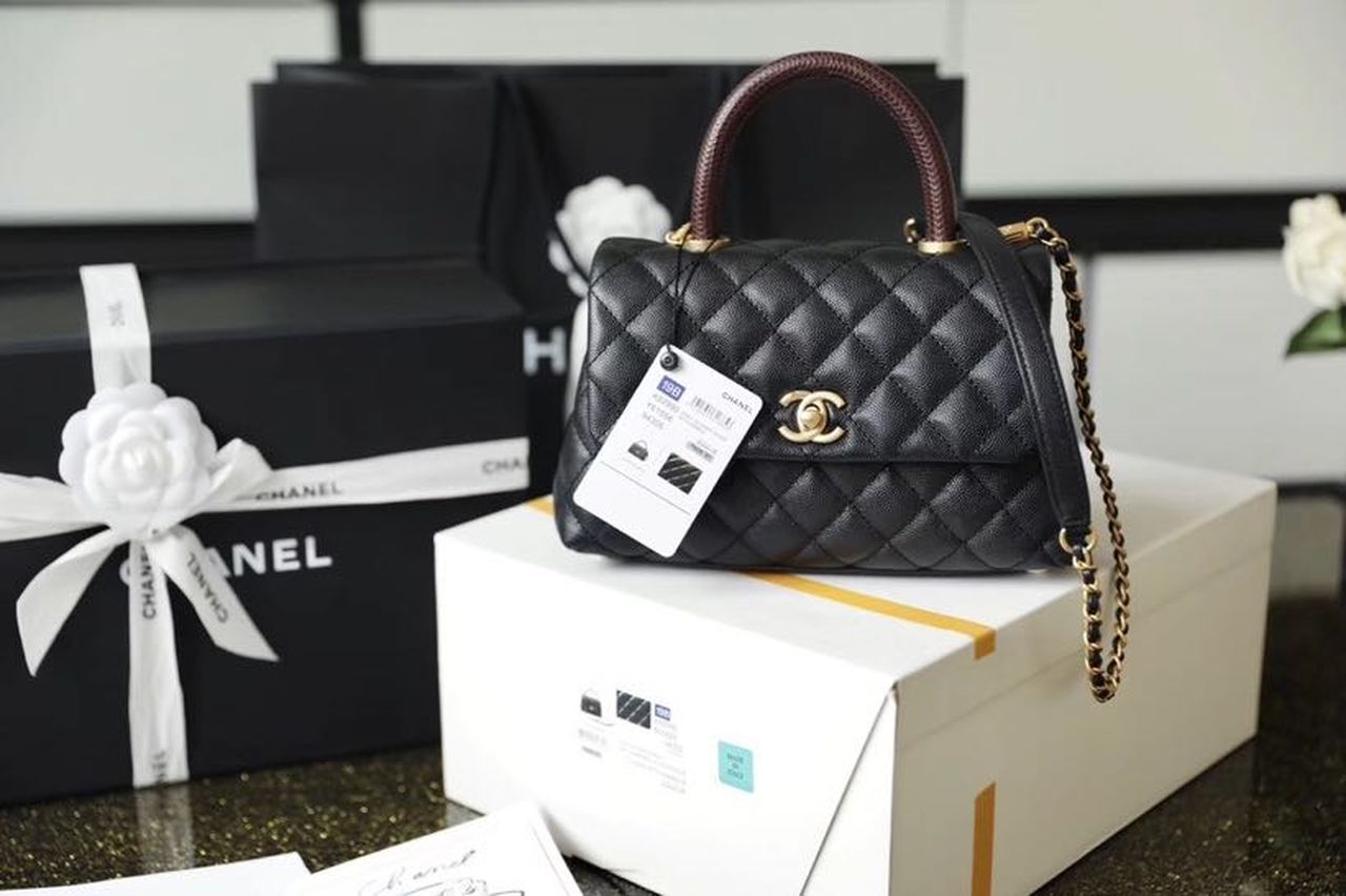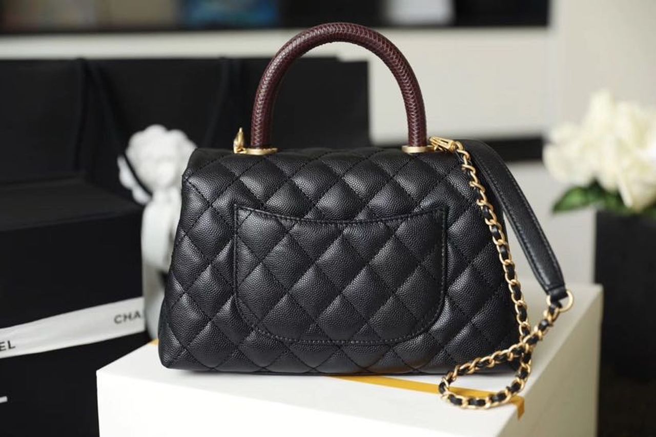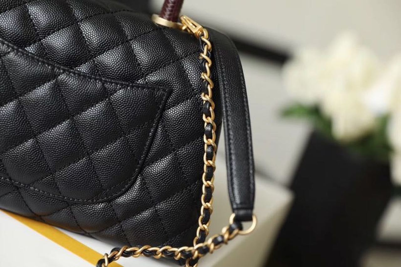 CC Medium Flap Bag With Top Handle Black For Women, Women’s Handbags, Shoulder And Crossbody Bags 9in/23cm A92990