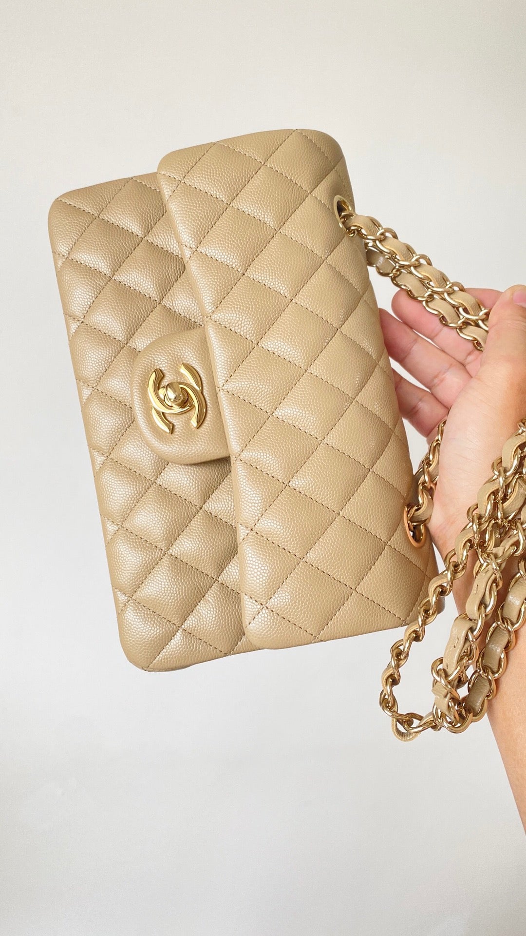 CHLSmall Classic Handbag Beige For Women, Women’s Bags 9.1in/23cm