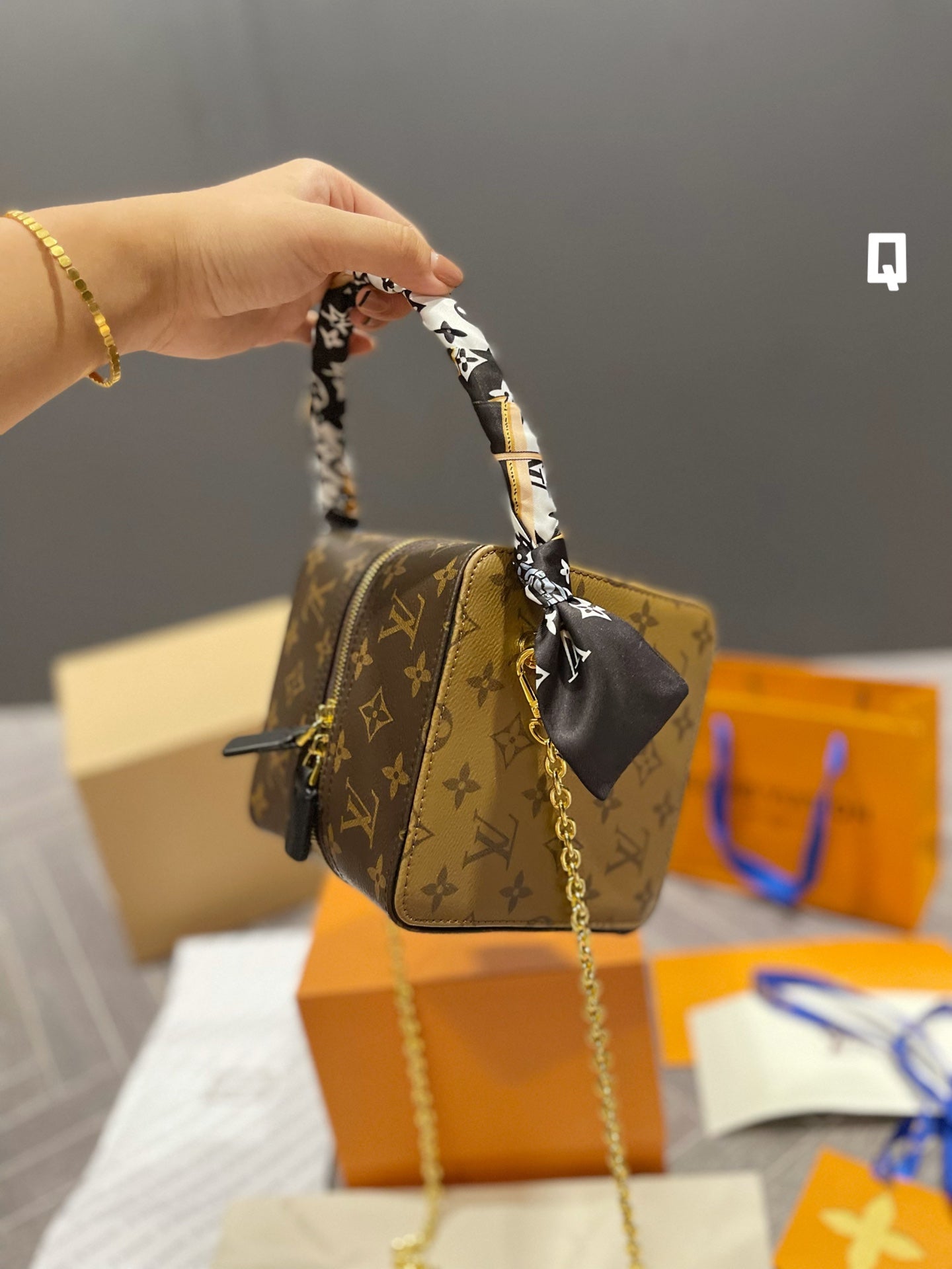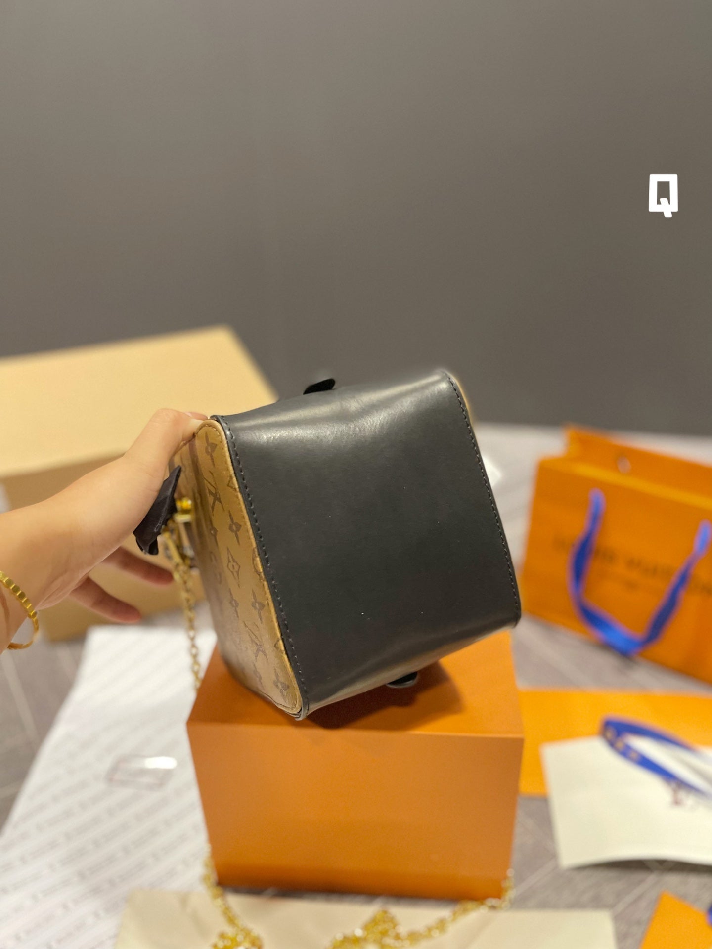 Includes Shipping bags, dustbag sleeper, care manual, booklet, tag.