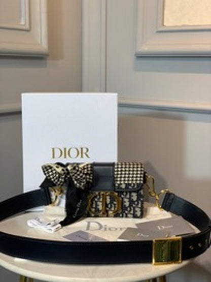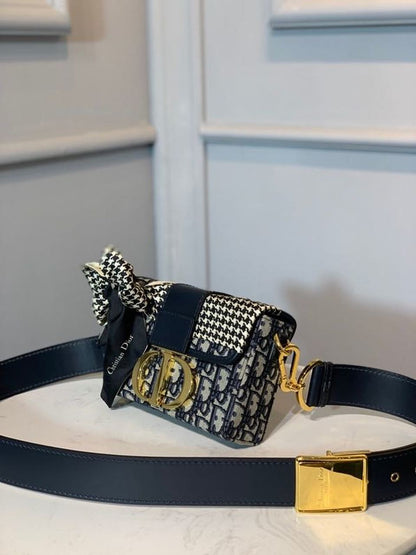 CHRSTN DR 30 Montaigne Box Bag Blue DYOR Oblique For Women17.5cm/7in FD Gold toned hardware CD