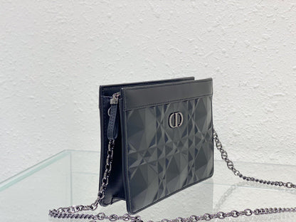 The Caro zipped pouch with chain combines modern and functional design with the House’s codes of elegance. Thanks to its removable chain punctuated with ‘CD’ chain links, the pouch can be carried by hand, worn over the shoulder or crossbody, and pairs well with other pieces from the same line.
