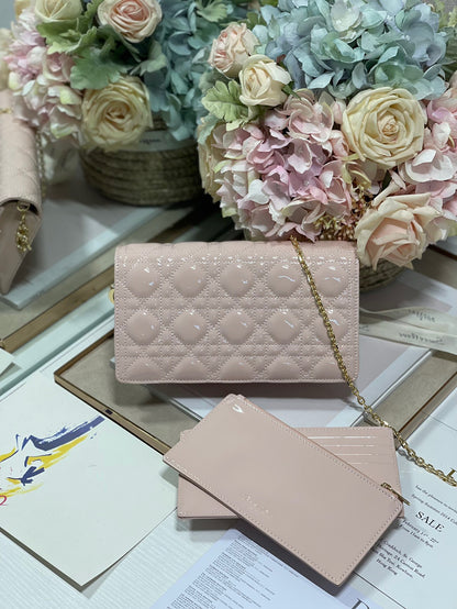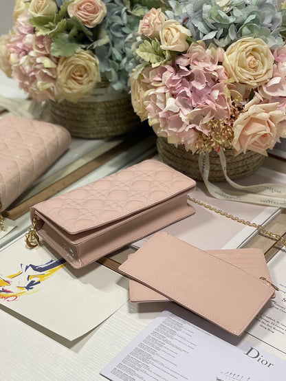 The Lady DYOR pouchis distinguished by the emblematic Cannage topstitching and a detachable ‘D.I.O.R.’ charm. This unique accessory may be worn with or without its chain strap and features two removable elements: a card holder and a zipped pouch. Each may be carried individually. The pouch will instantly stand out and pairs well with other pieces from the same line.