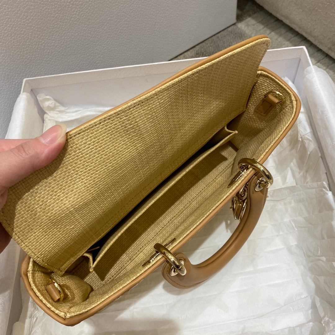 CHRSTN DR Lady D-Joy Bag Natural Cannage Raffia, Brown Handbags, 26cm CD M0540OMBD_M925