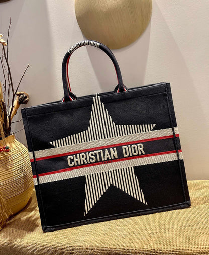 CHRSTN DR Large DYOR Book Tote Blue Three-Tone Embroidery, Blue, For Women Women’s Handbags, Shoulder Bags, 42cm CD M1286ZRSE_M928