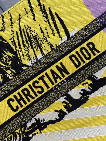 CHRSTN DR Large DYOR Book Tote Bright Yellow and Pink D-Jungle Pop Embroidery, Yellow/Pink, For Women Women’s Handbags, 41cm CD M1286ZRON_M886