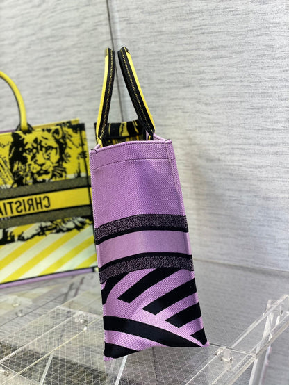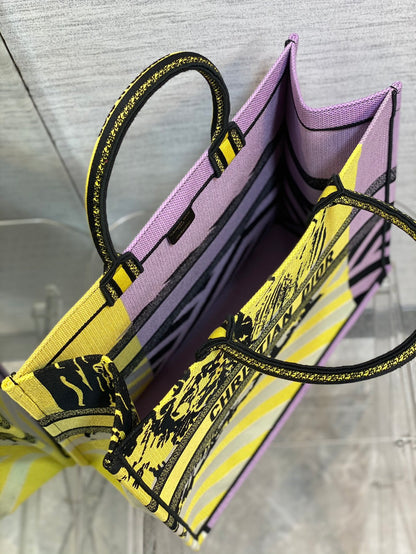 DI Large Book Tote Bright Yellow and Pink D-Jungle Pop Embroidery, Yellow/Pink, For Women Women’s Handbags, 41cm CD M1286ZRON_M886