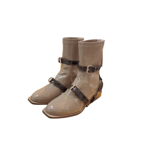 FENDI BUCKLE PATENT NEOPRENEFENDI SHORT FLAT BOOTS BROWN