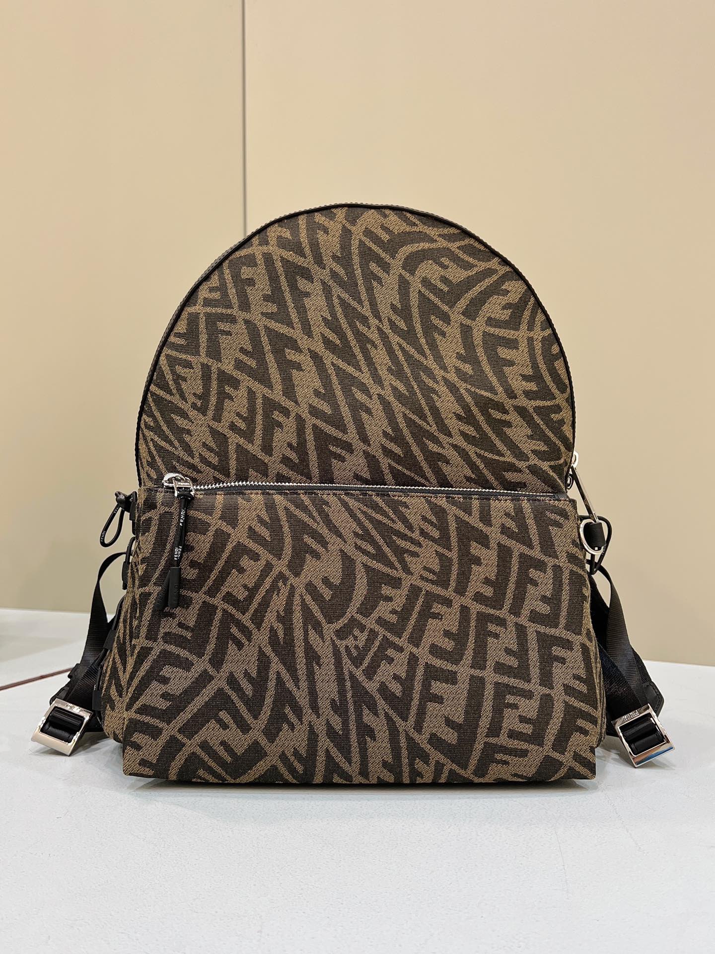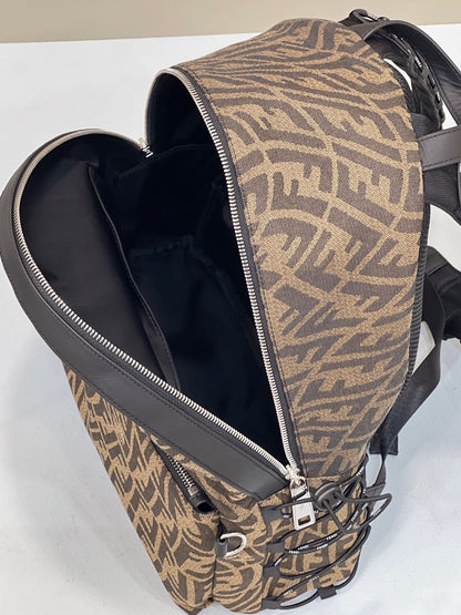 FND Backpack In Brown FF Vertigo Fabric Bag For Woman 30cm/12in