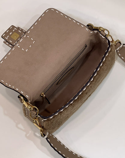 FND Baguette Beige Sheepskin Bag For Woman 27cm/10.5in 8BR600AH96F1F7O