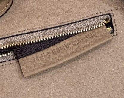 The bag can be carried by hand, or worn either on the shoulder or cross-body thanks to the handle and shoulder strap, both detachable.