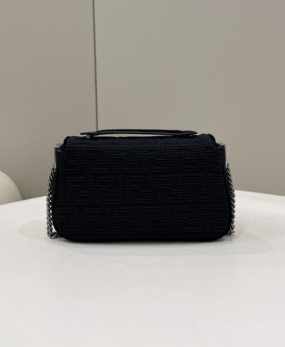 FI Baguette Chain Midi Black FF Fabric Bag For Woman 14.5cm/6in