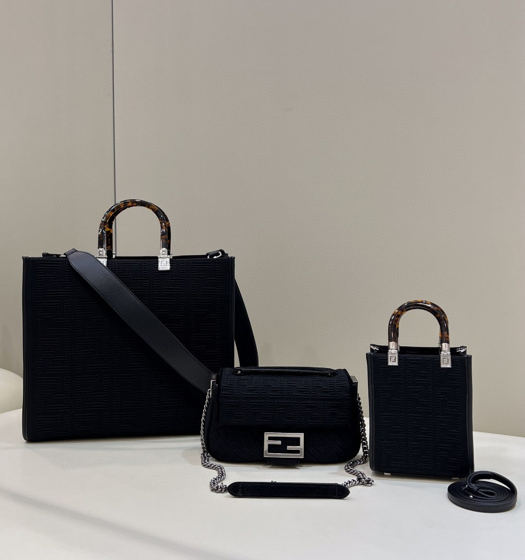 FND Baguette Chain Midi Black FF Fabric Bag For Woman 14.5cm/6in