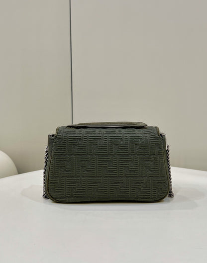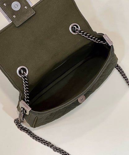 FI Baguette Chain Midi Green FF Fabric Bag For Woman 14.5cm/6in 8BR793AHW5F1F2L