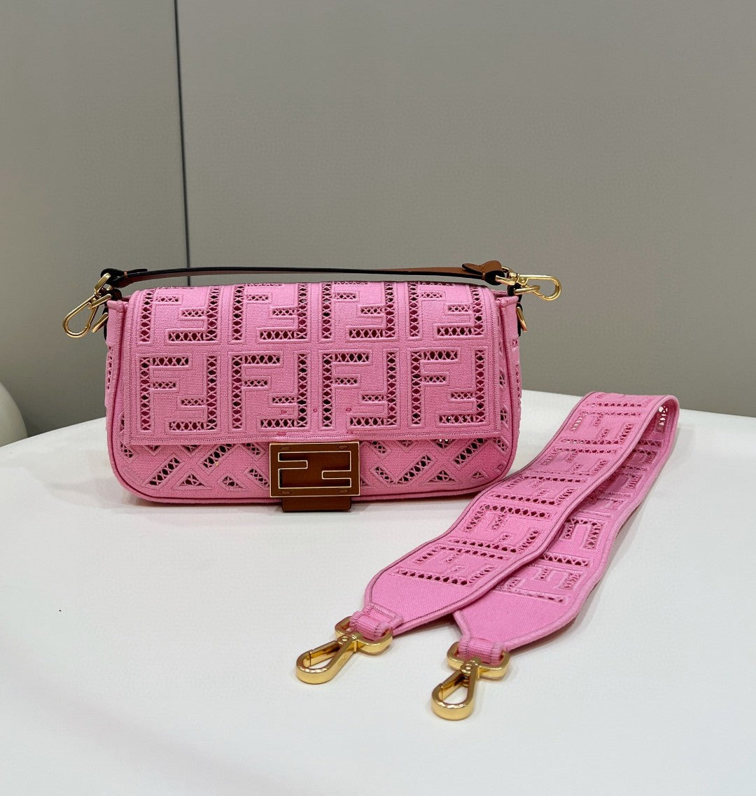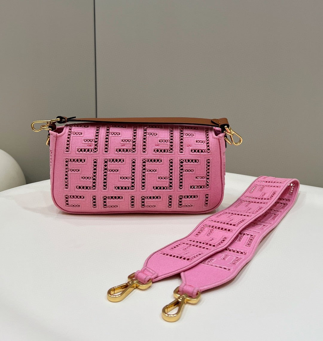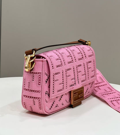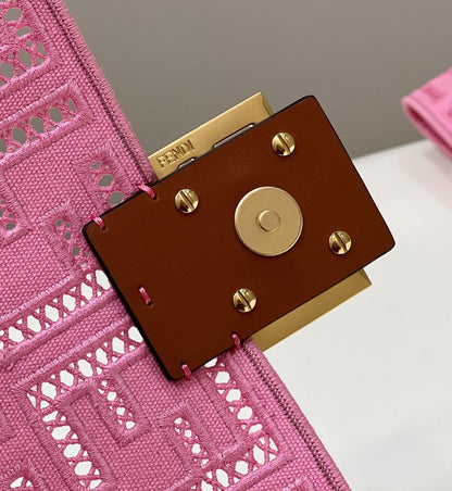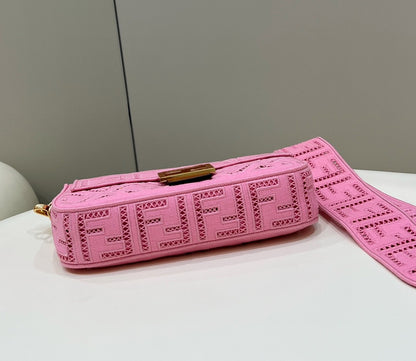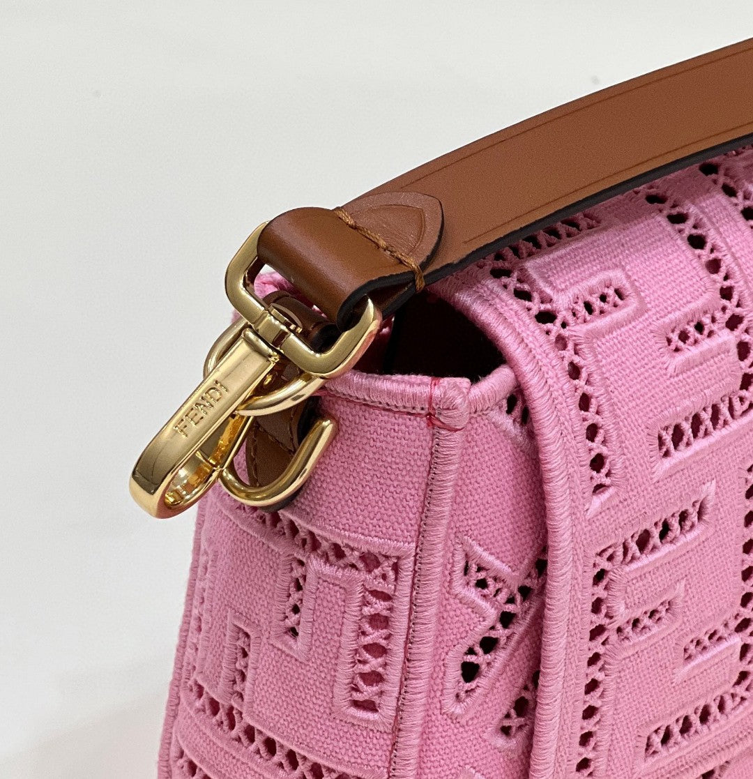 FND Baguette Pink with Embroidery Medium Bag For Woman 28cm/11in