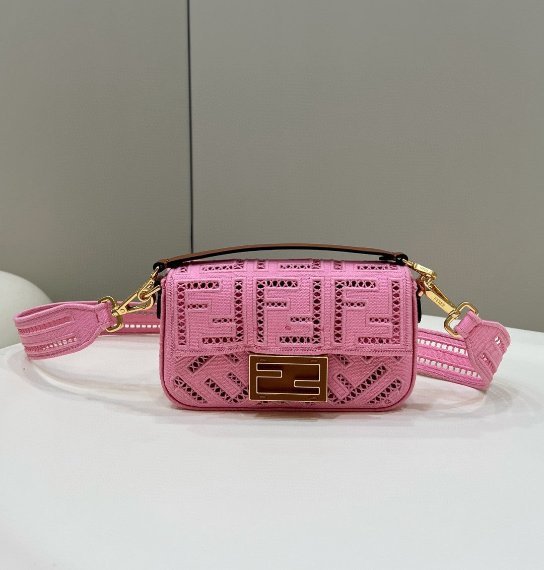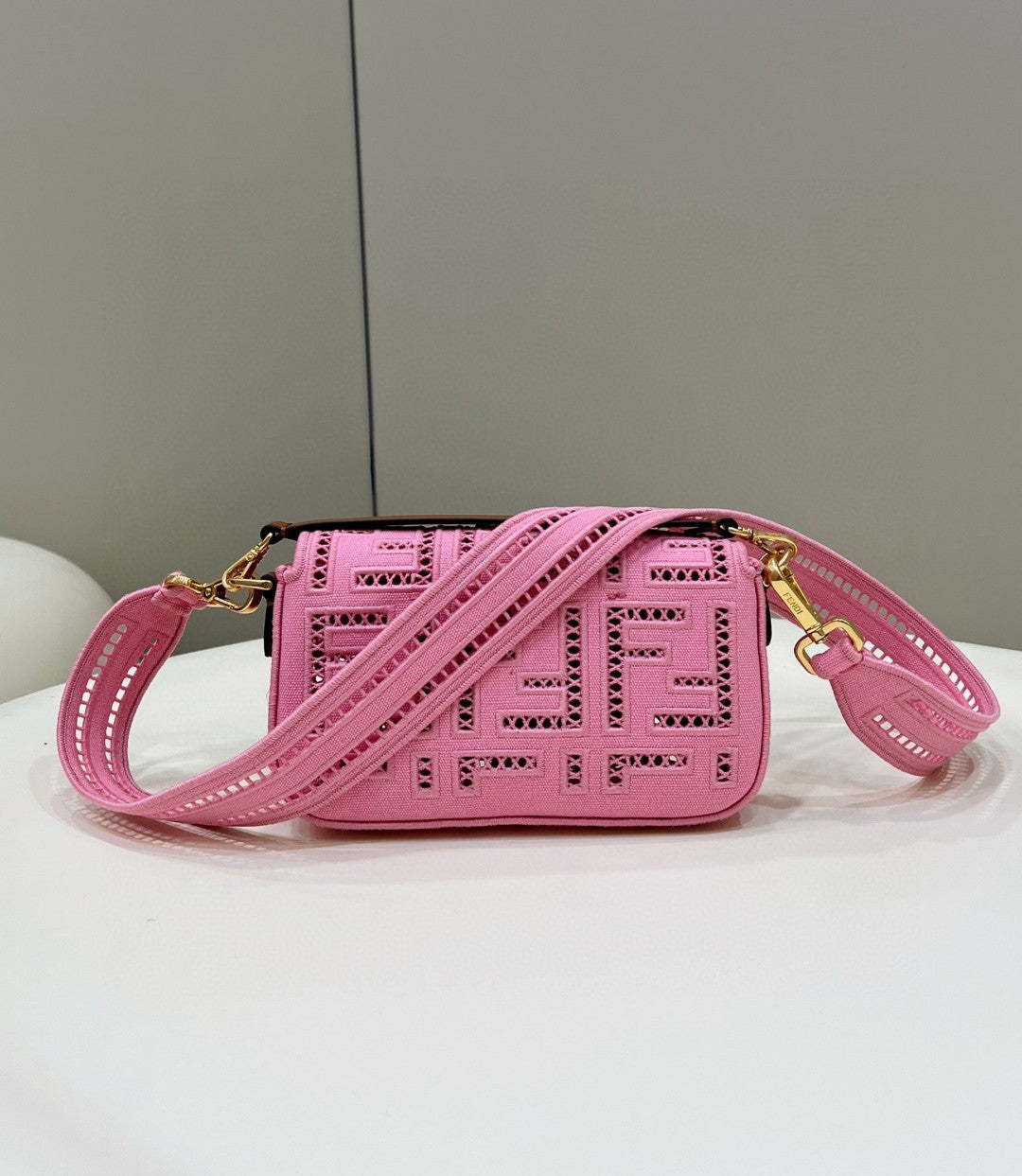 FND Baguette Pink with Embroidery Small Bag For Woman 21cm/8in
