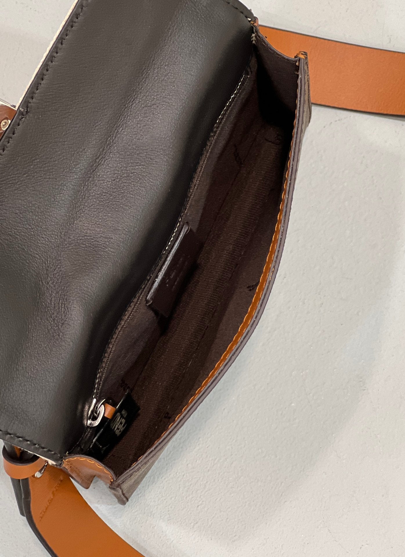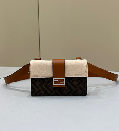 FND Baguette Pouch Brown fabric Beige Pouch For Woman 16cm/6in