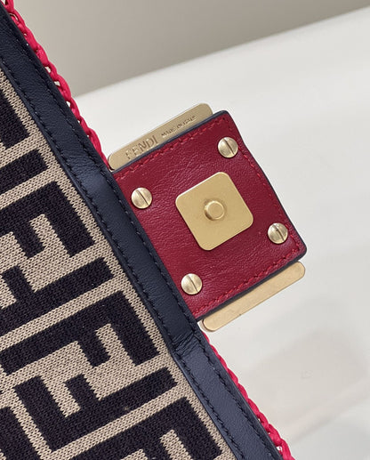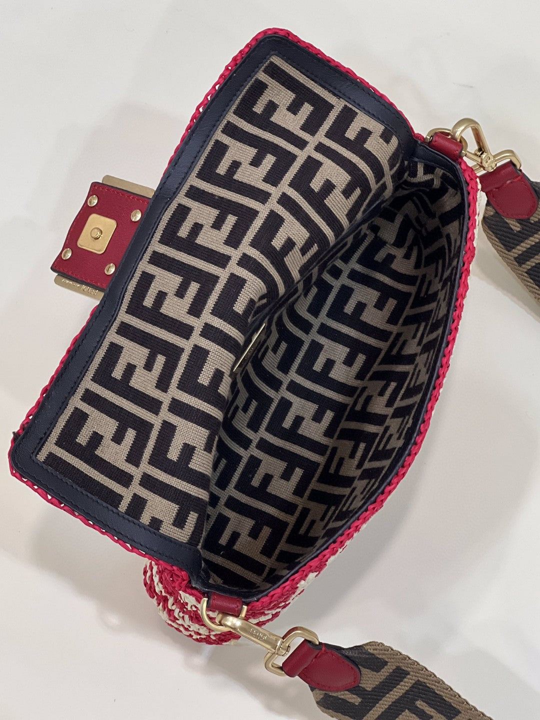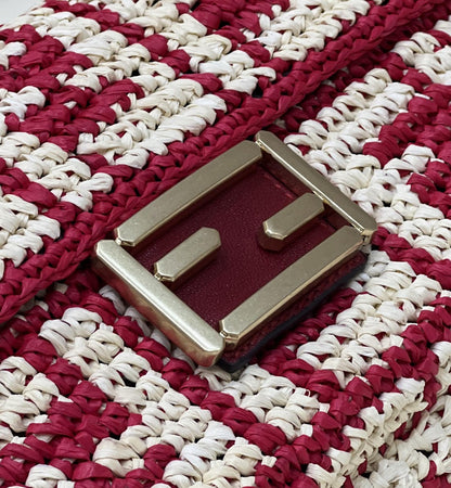 FI Baguette Red raffia back with crocheted FF Bag For Woman 15cm/6in