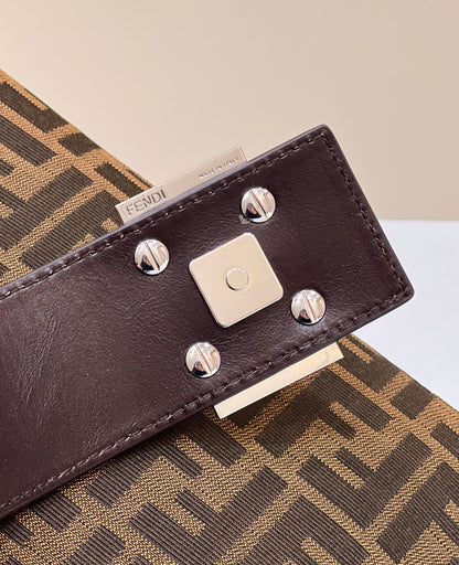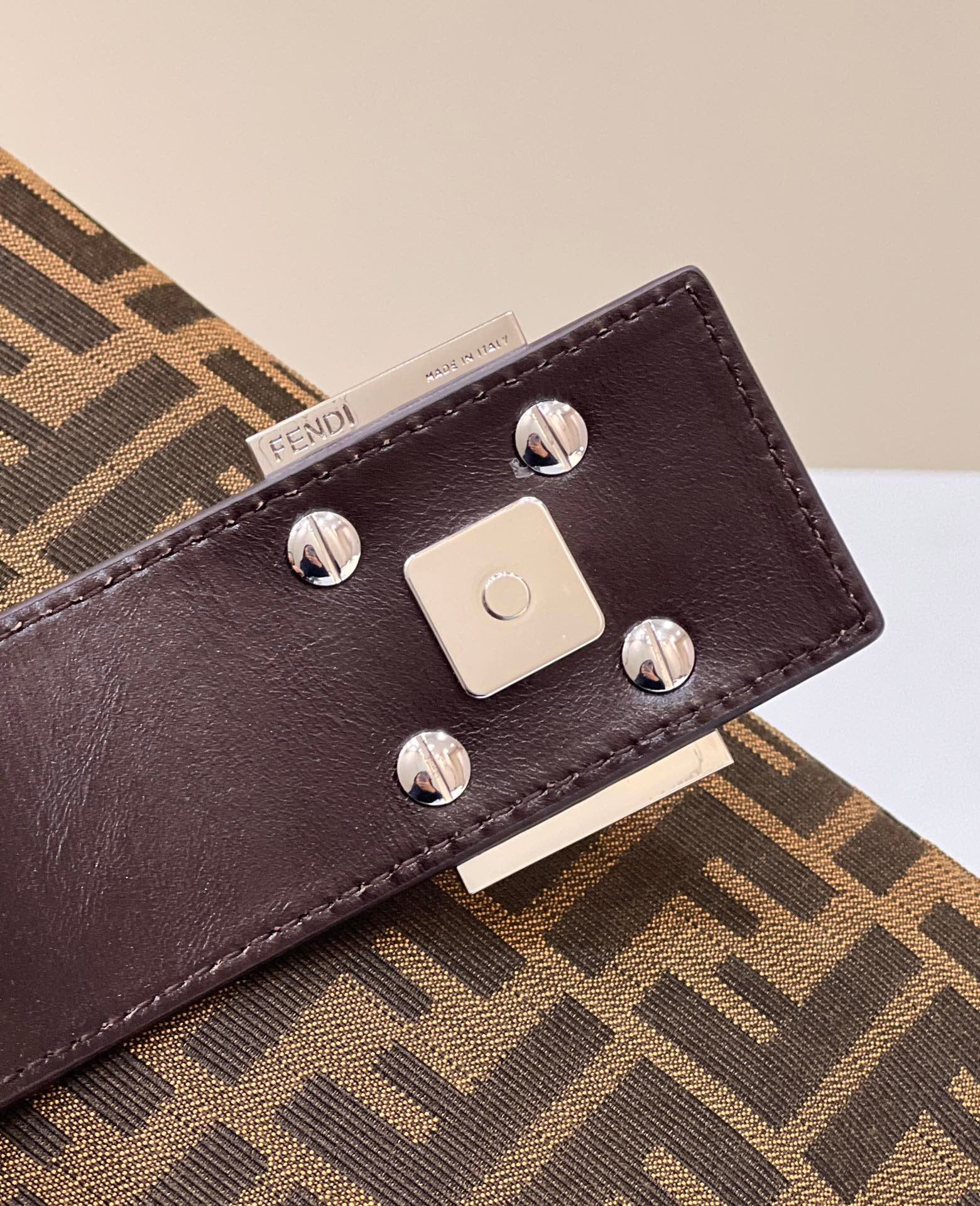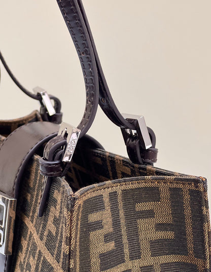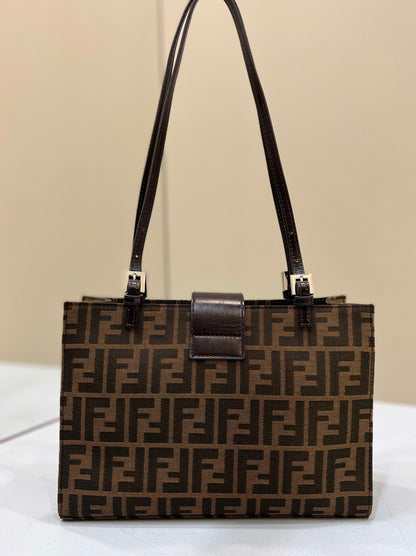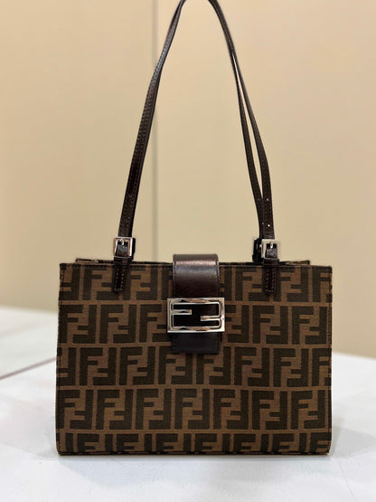 Vertical design shopping bag made of light grey Cuoio Romano leather with tone on tone varnished FF Baguette buckle.