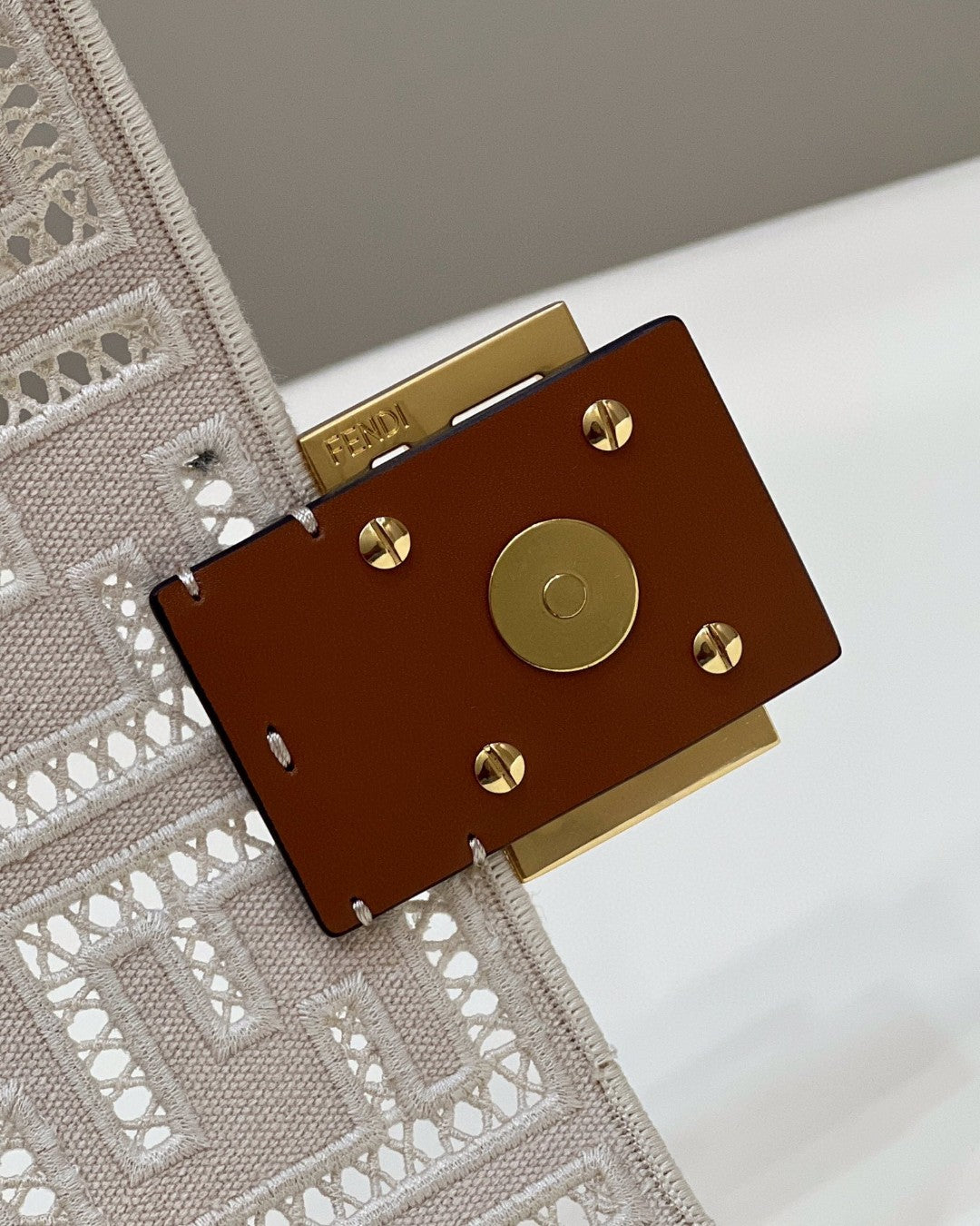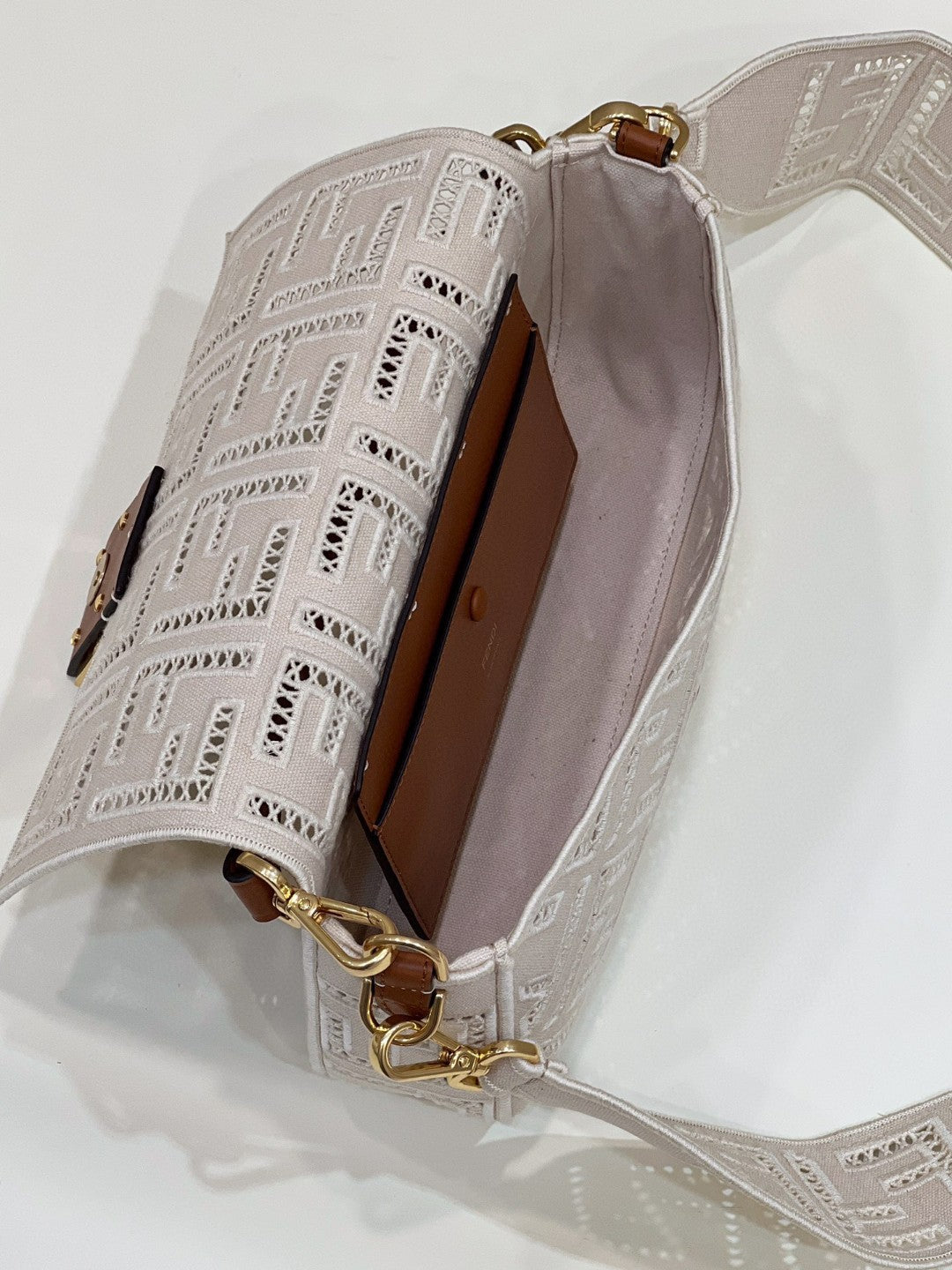 FND Baguette White with Embroidery Medium Bag For Woman 28cm/11in