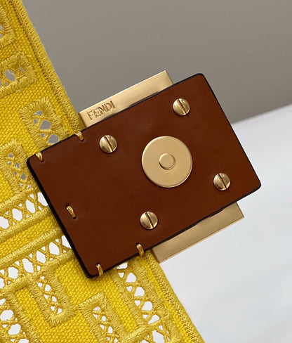 FND Baguette Yellow with Embroidery Medium Bag For Woman 28cm/11in