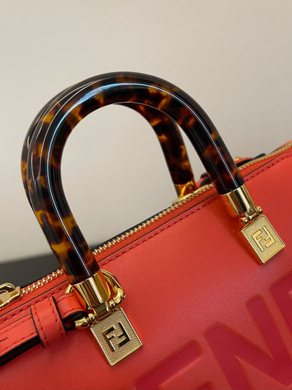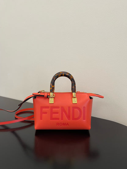 Iconic mini By The Way Boston bag, made of Red leather with hot-stamped FND ROMA lettering. Zip fastening.