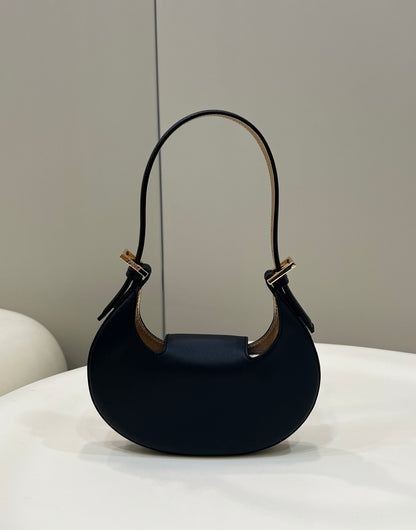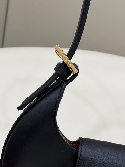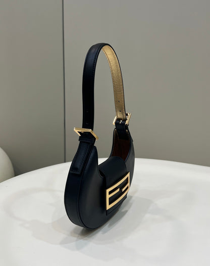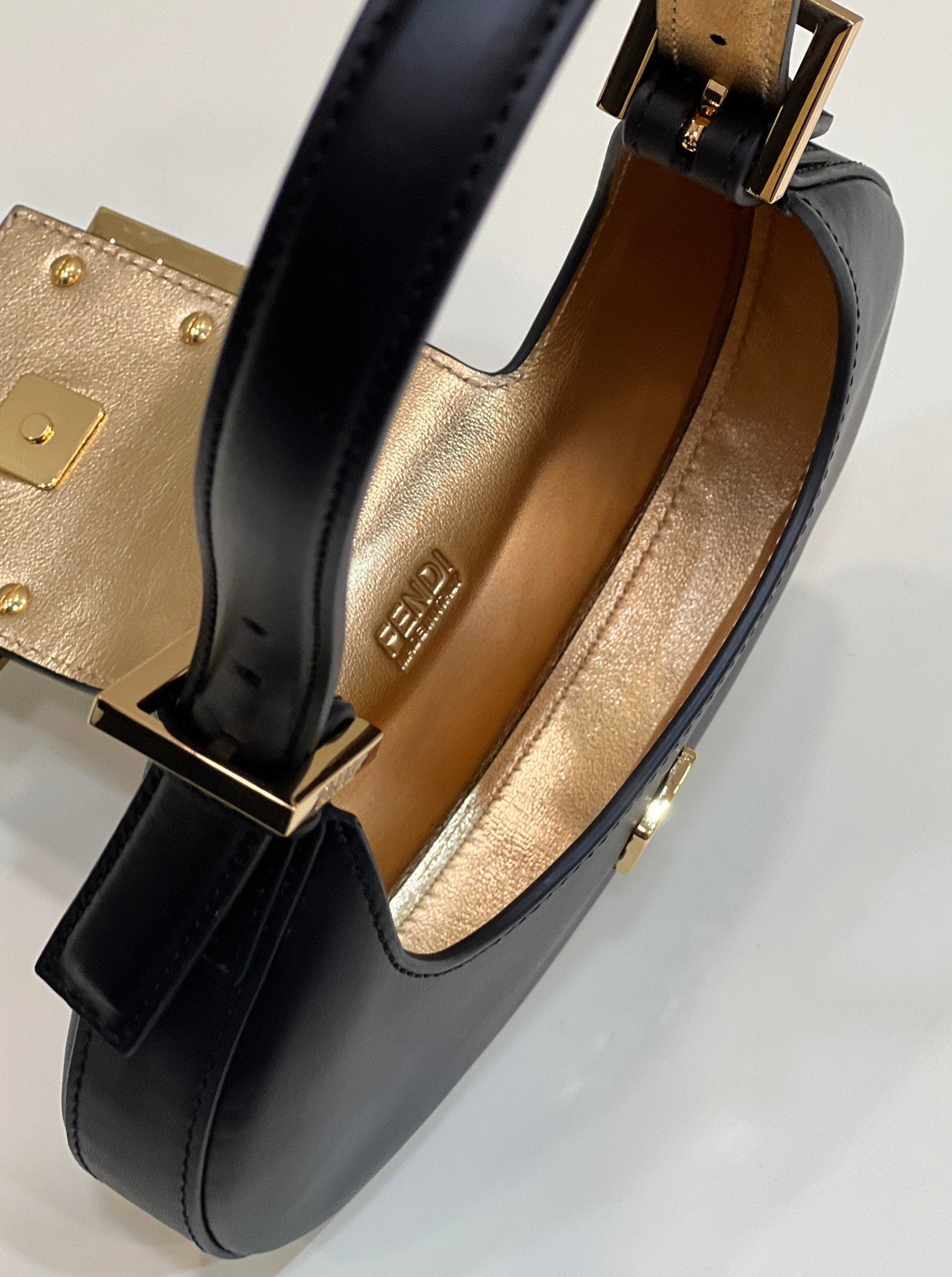 FND Cookie mini hobo bag made of pale black decorated with an FF clasp. The bag can be carried by hand thanks to the adjustable strap.
