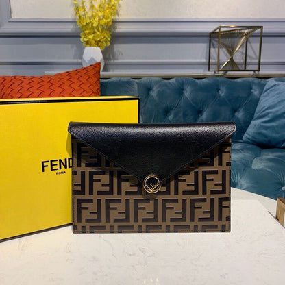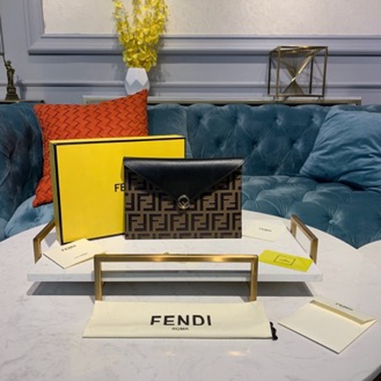 FND FF Embossed Envelope Wallet 9.4in/24cm Brown/Black For Women