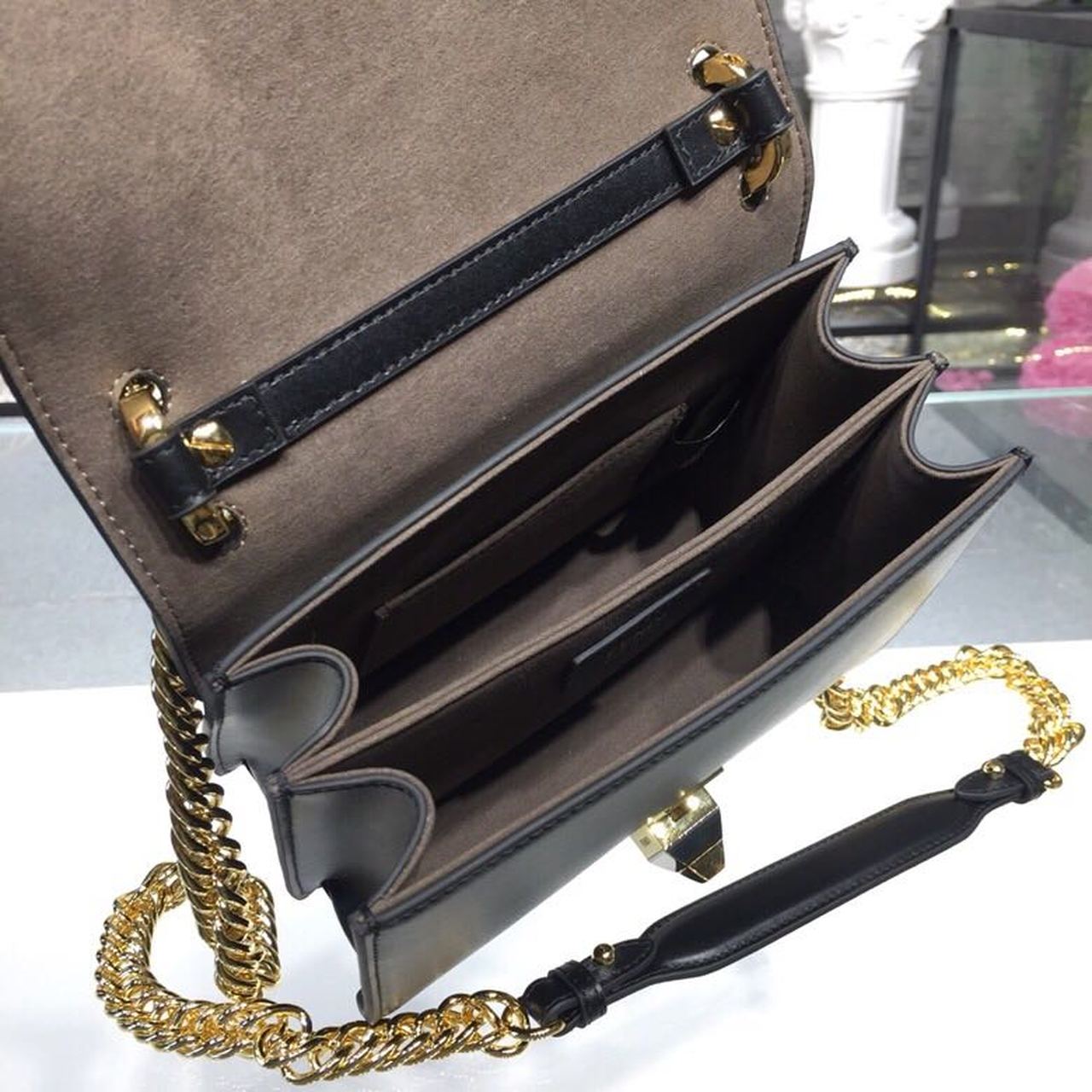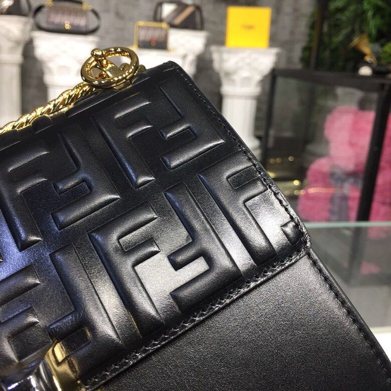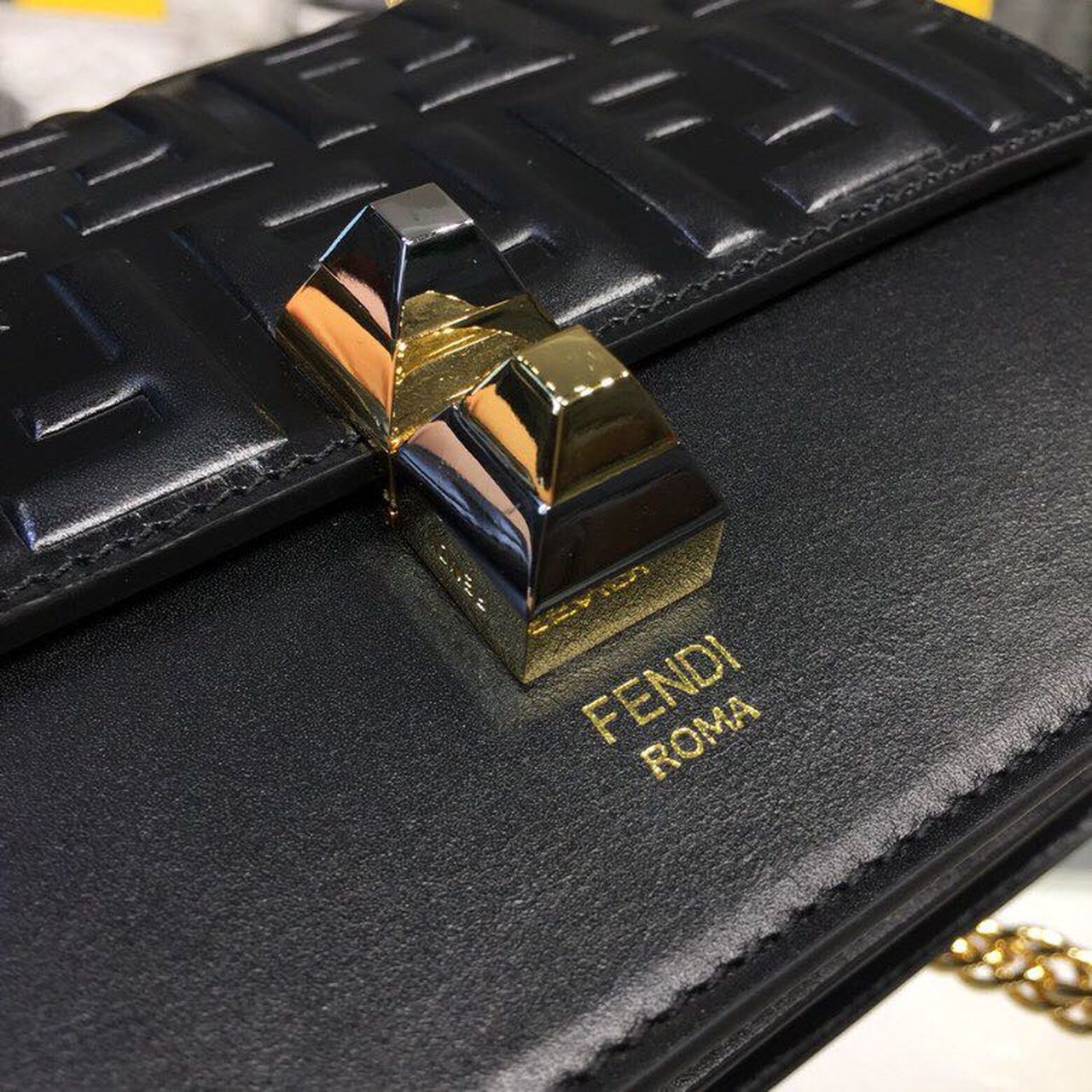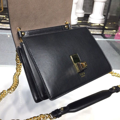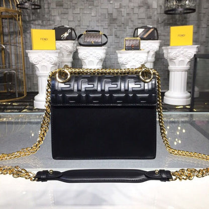 FND FF Logo Kan I Bag 9.8in/25cm With Gold Toned Chain Black For Women