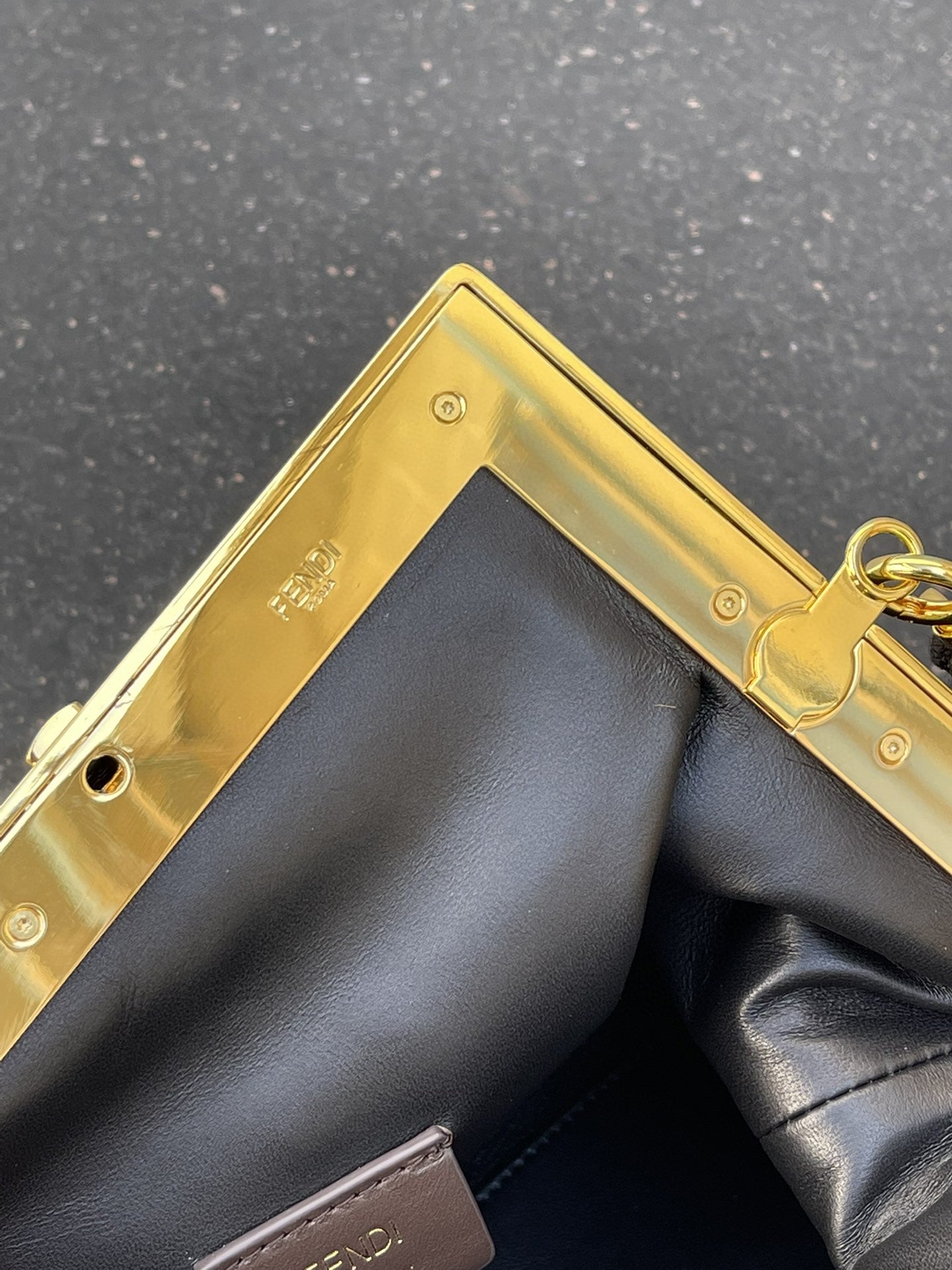 Featuring an interior compartment lined in fabric with the iconic FF motif, removable inner hooks and gold-finish metalware.