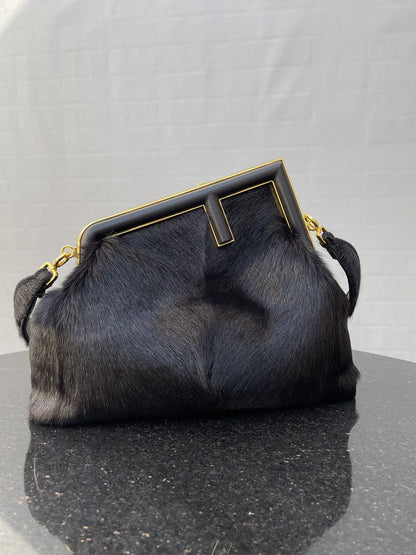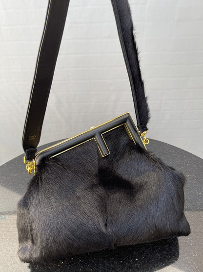 FND First Medium Black Fox Fur Bag For Woman 32.5cm/13in