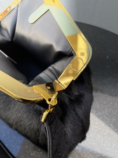 FI First Medium Black Fox Fur Bag For Woman 32.5cm/13in