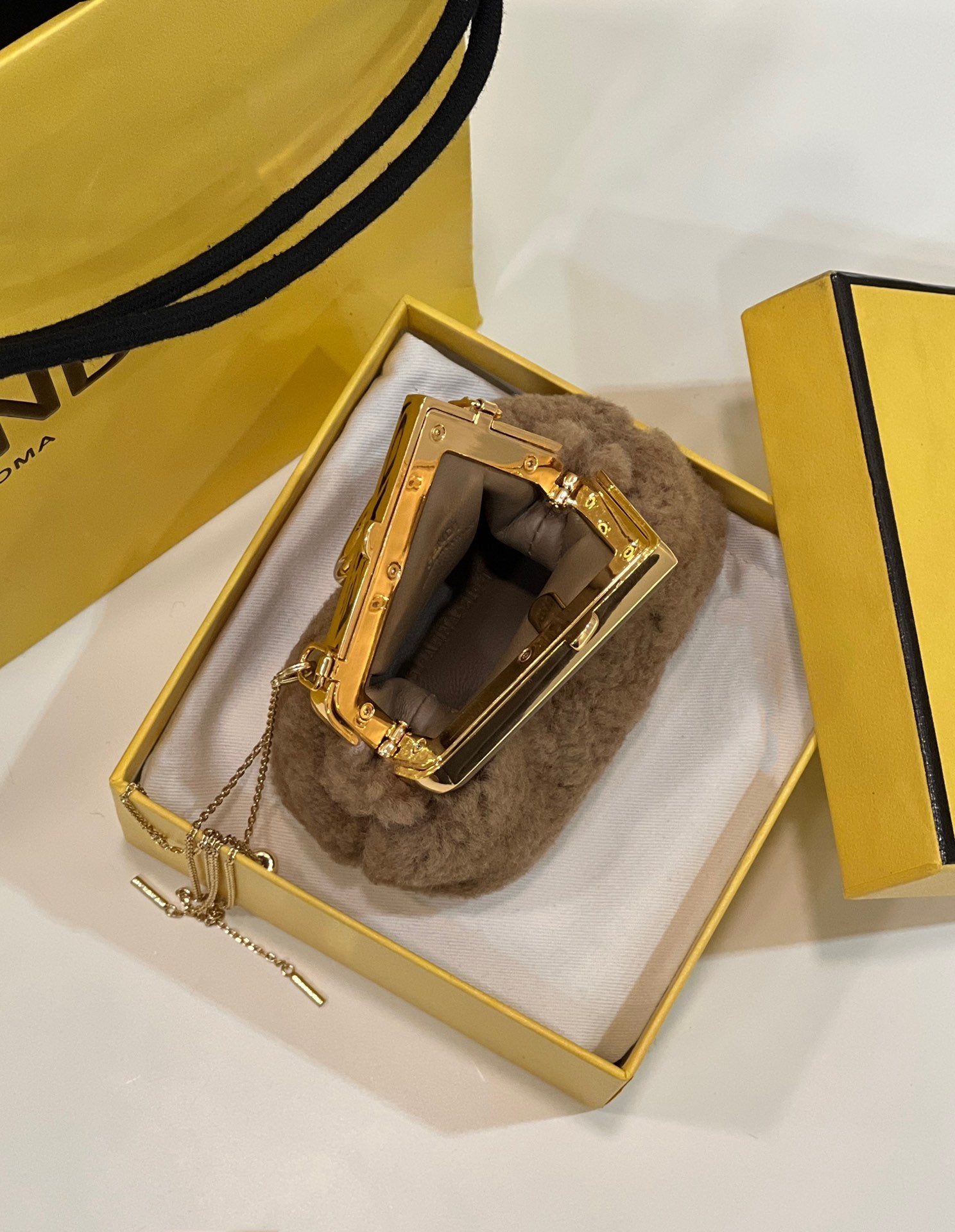 FI First Mini Brown Mink Bag For Woman 11.5cm/4in