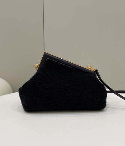 FND First Small Black Mink Bag For Woman 26cm/10in