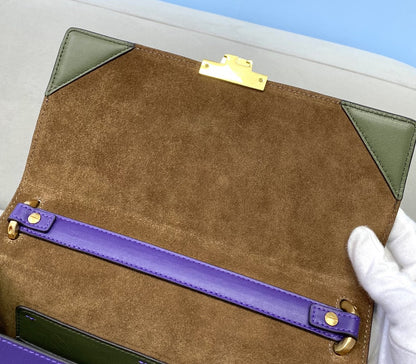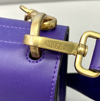 From signature pyramid stud embellishments to the famous double-F logo, this new season you will be presented with a collection that is filled with elegance, flair and confidence. Crafted in blue lamb skin, this small Kan U shoulder bag is a classic. Featuring a foldover top with push-lock closure, a gold-tone logo plaque, an internal slip pocket and a gold-tone chain shoulder strap.