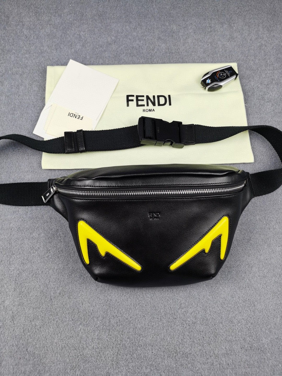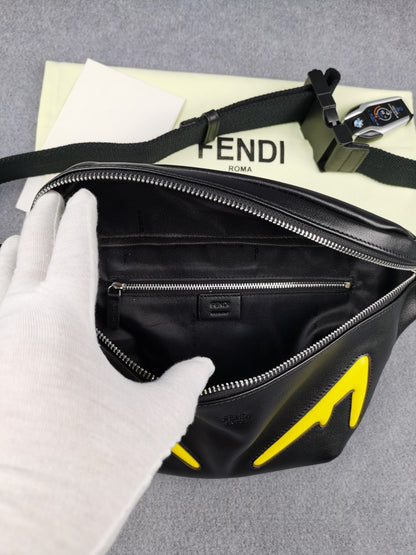 FND Little Monster Belt Bag Black/Yellow For Men, Men’s Bags 7.9in/20cm FF