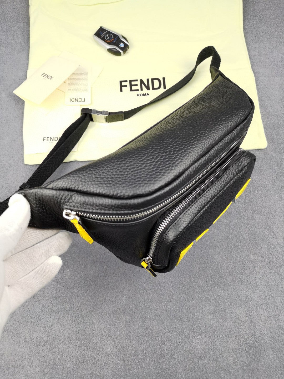FND Little Monster Belt Bag Black/Yellow For Men, Men’s Bags 7.9in/20cm FF
