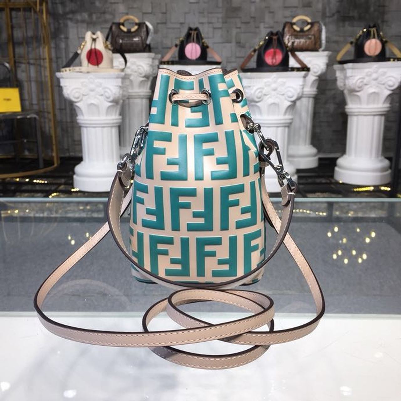 FND Mon Tresor Beige/Teal For Women, Women’s Handbags, Shoulder And Crossbody Bags 7in/18cm FF 8BS010