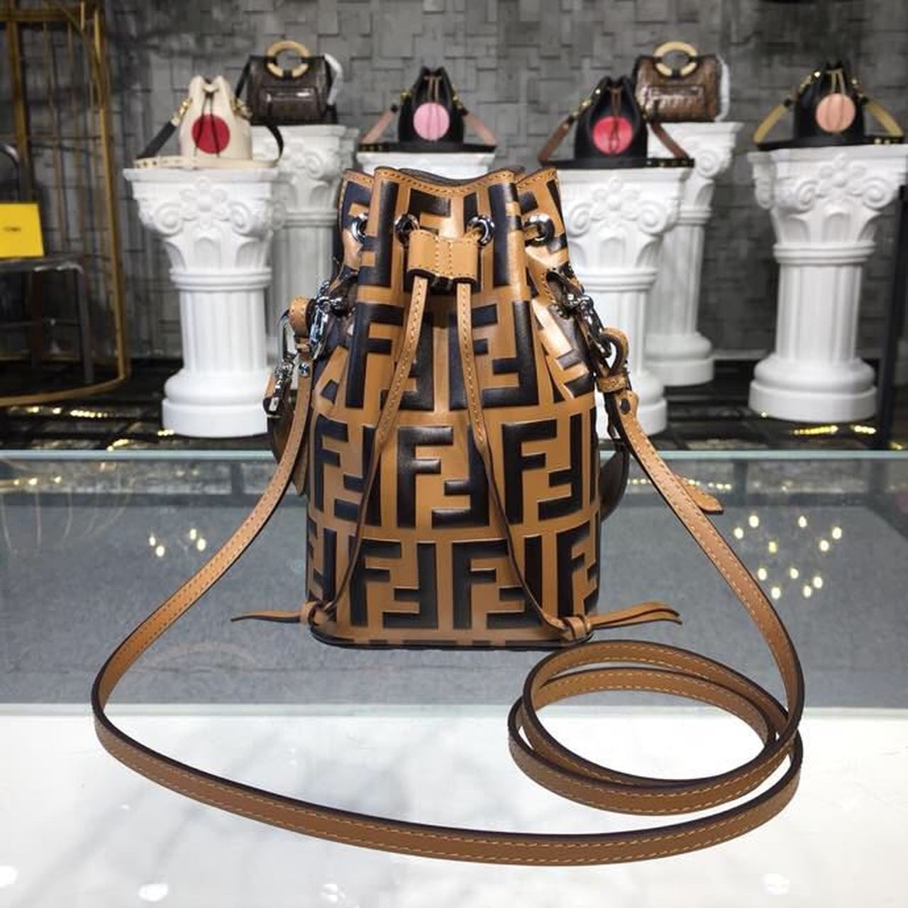 FND Mon Tresor Bucket Bag Brown/Black For Women, Women’s Handbags, Shoulder And Crossbody Bags 7in/18cm FF 8BS010A659F13VK