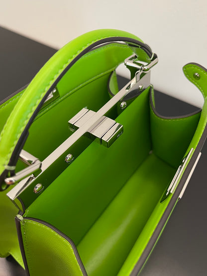 Iconic Peekaboo ISeeU bag in an ideal, compact size. Made from soft, padded, Chartreuse nappa leather and embellished with the classic twist lock on both sides.
