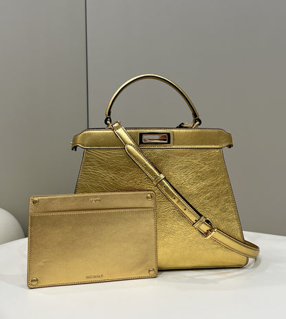 FND Peekaboo Medium Gold Bag For Woman 33cm/13in