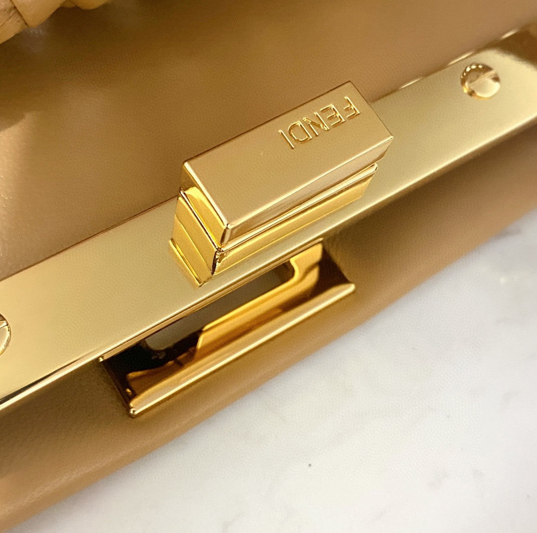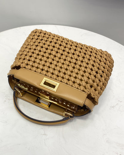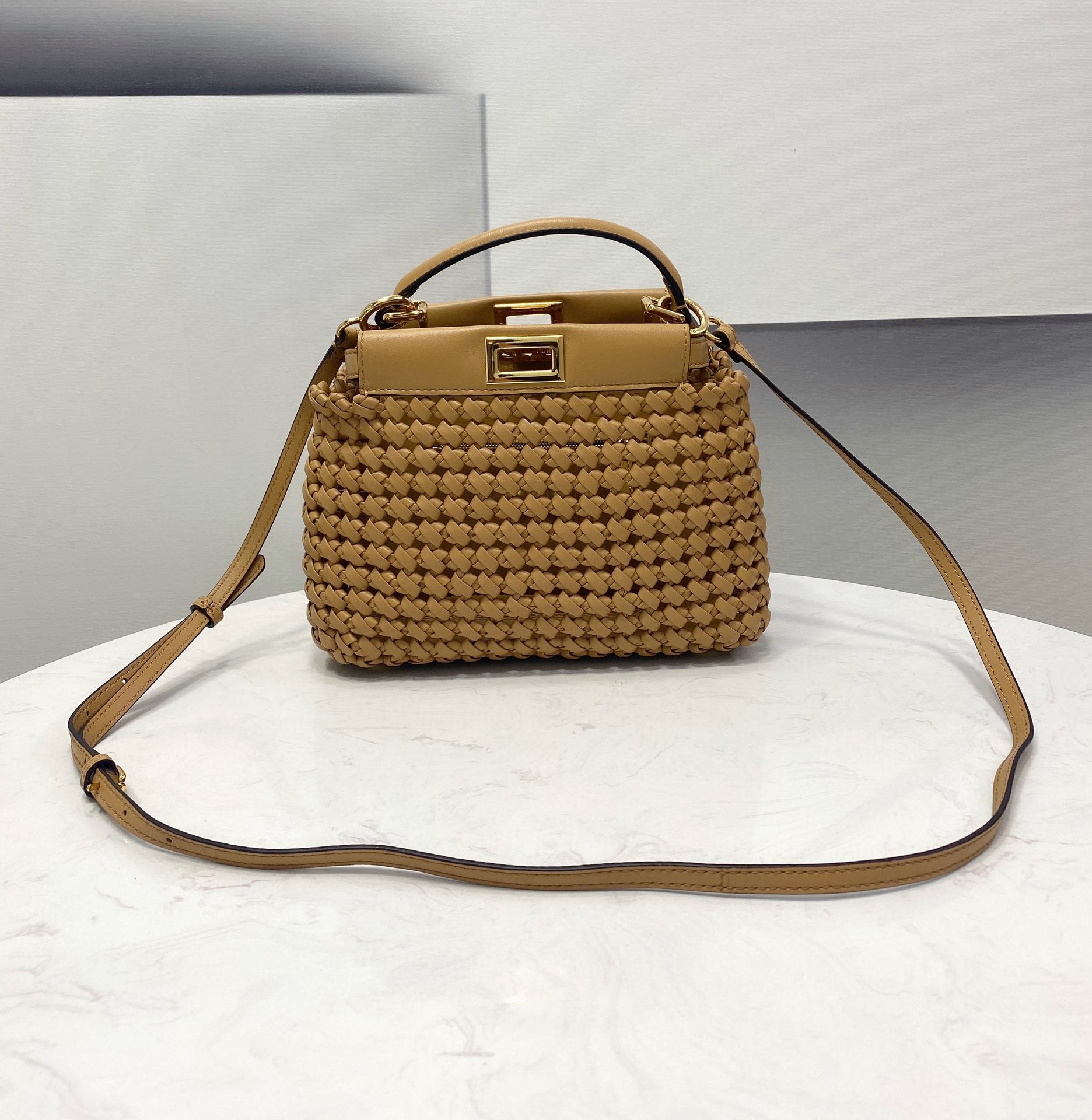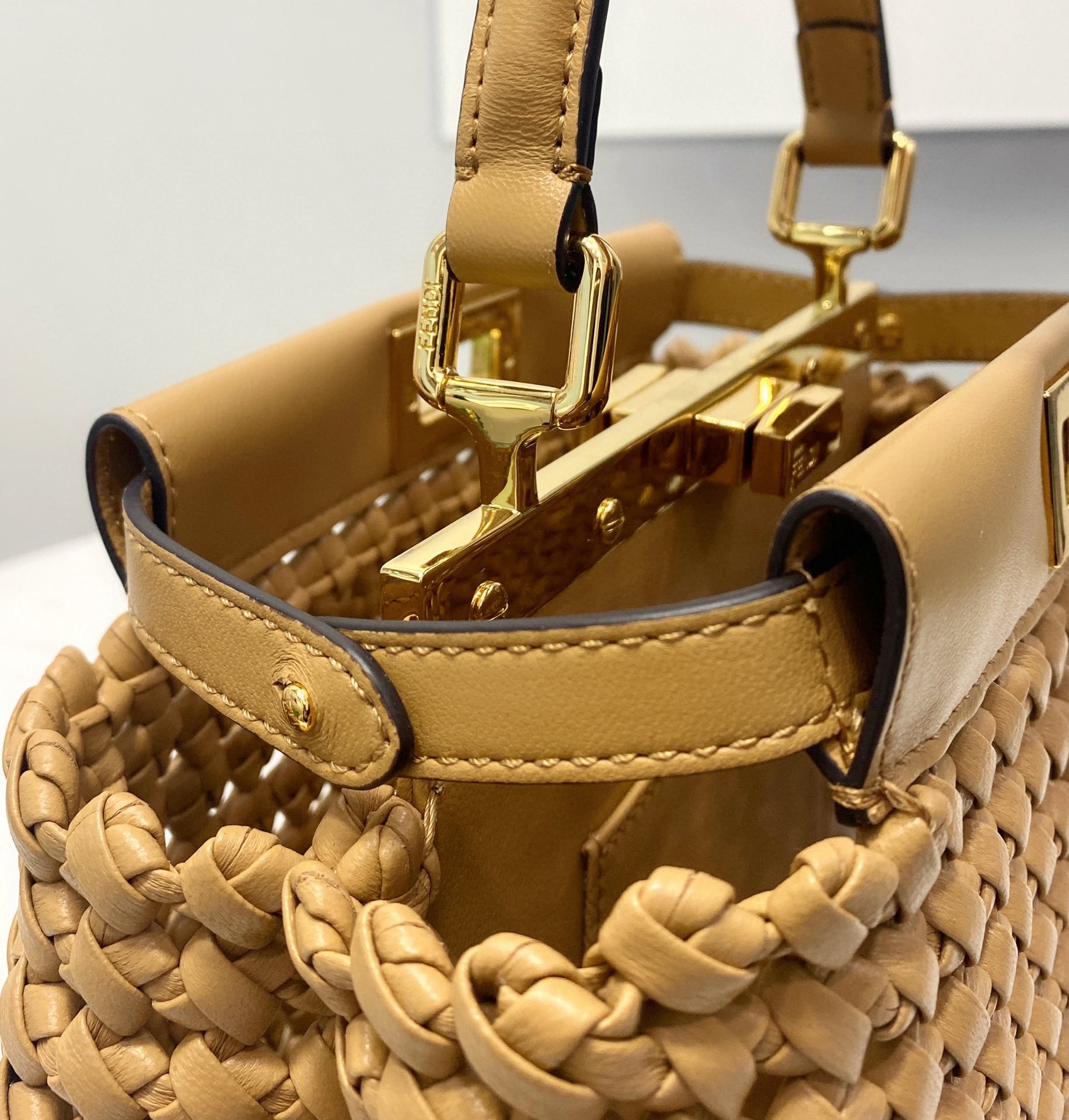 FND Peekaboo Mini Light Brown Braided Bag For Woman 18cm/7in