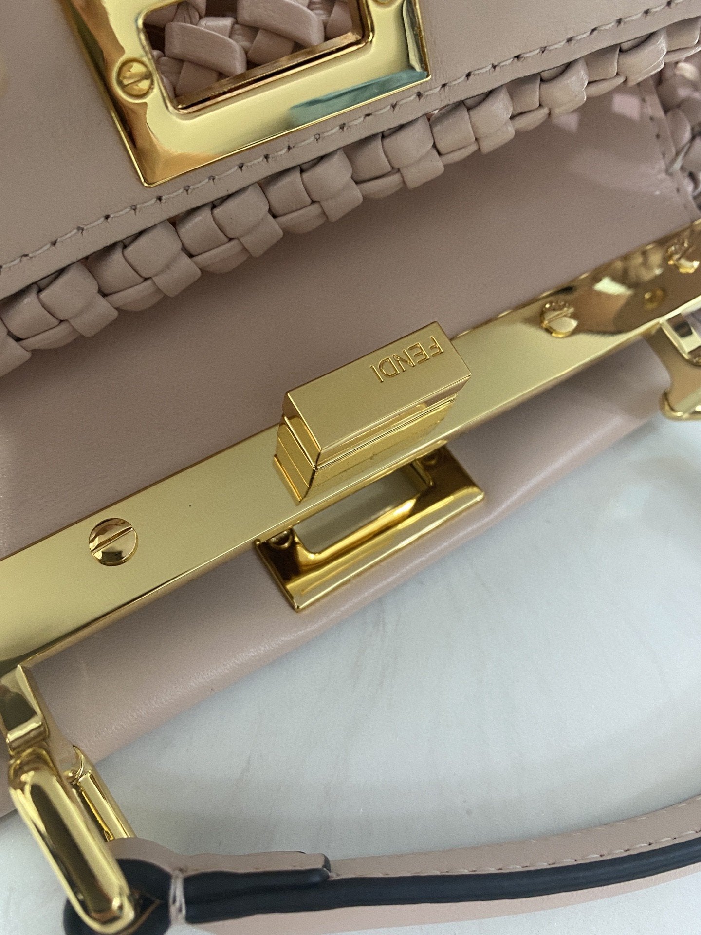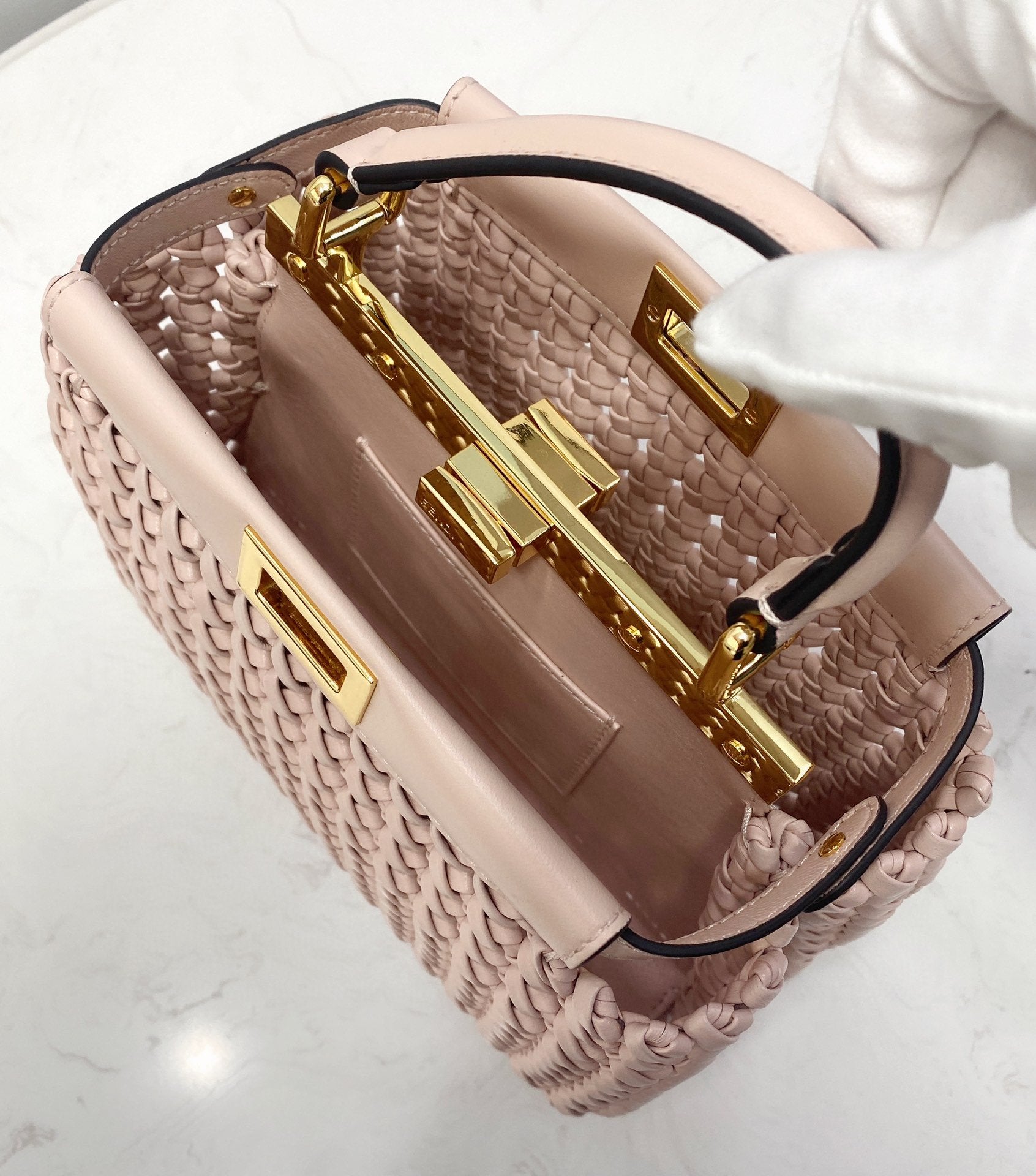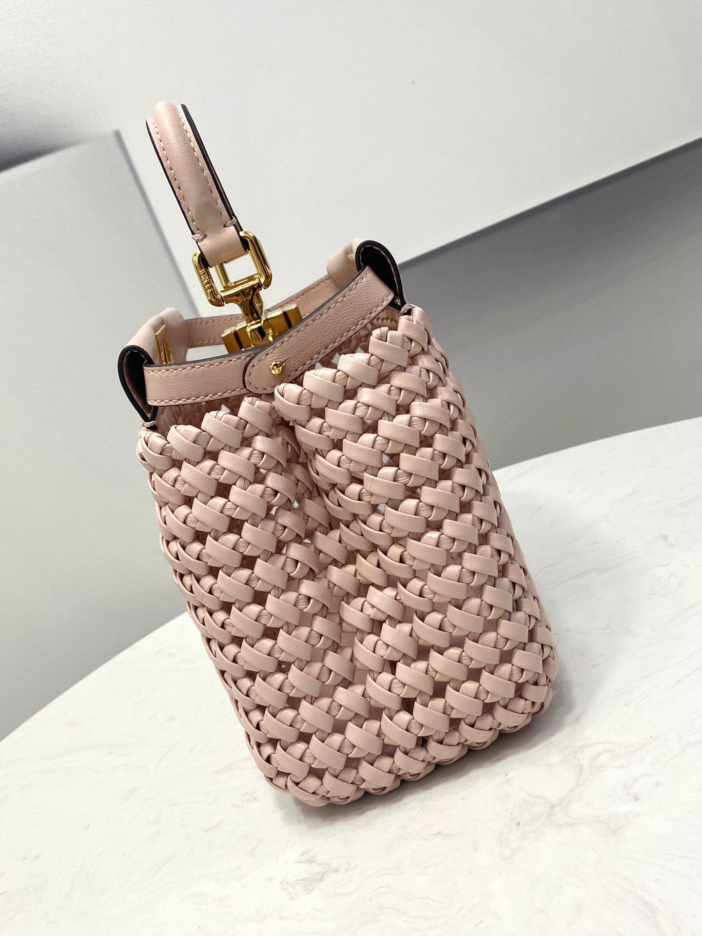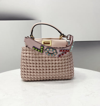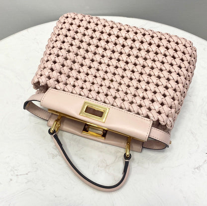 FND Peekaboo Mini Pale Pink Braided Bag For Woman 18cm/7in