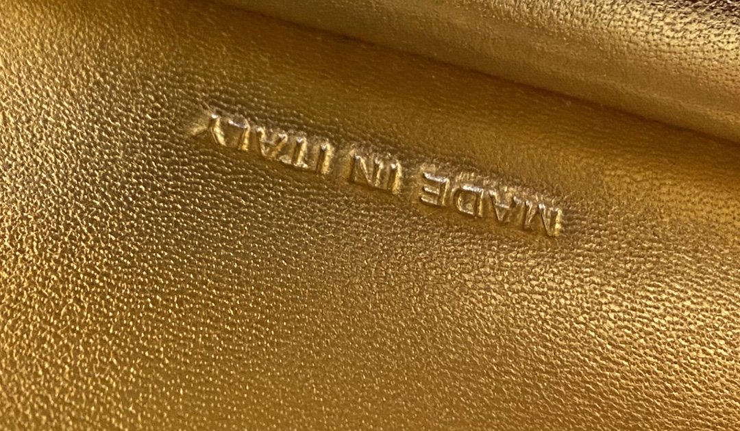 Featuring a soft laminated gold-coloured nappa leather lining, two compartments separated by a stiff partition and gold-finish metalware.