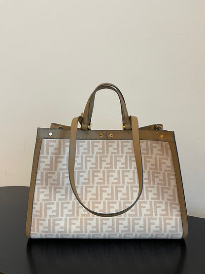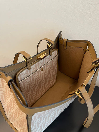 FI Peekaboo X-tote Bag Beige Canvas For Women, Women’s Handbags, Shoulder Bags 16.1in/41cm FF 8BH374