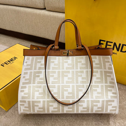 FND Peekaboo X-tote Bag White Canvas For Women, Women’s Handbags, Shoulder Bags 16.1in/41cm FF 8BH374