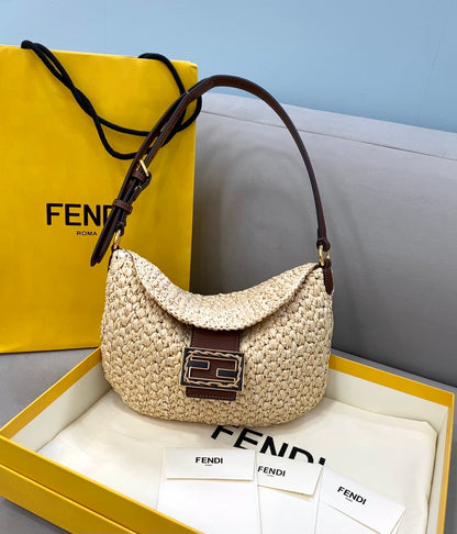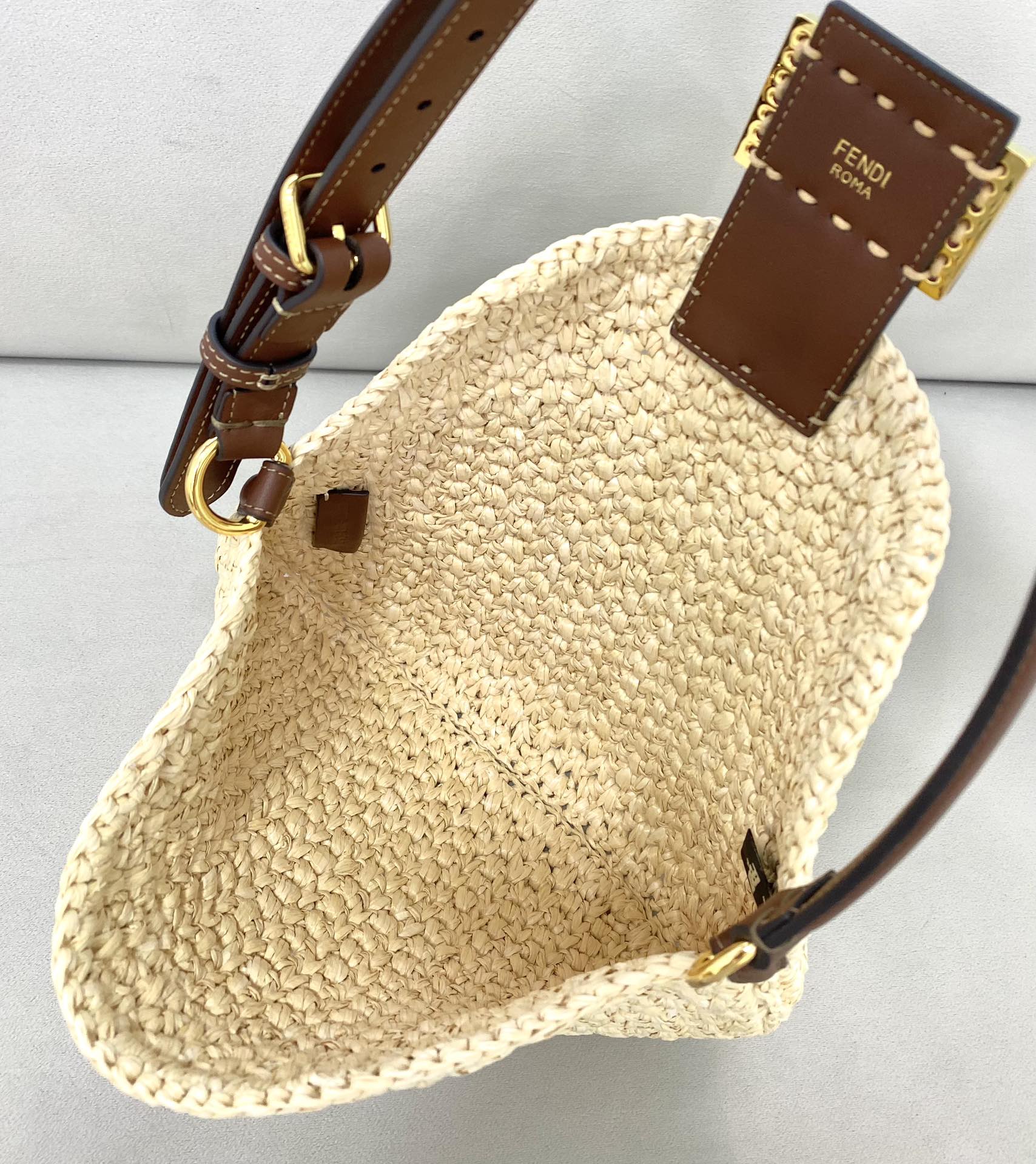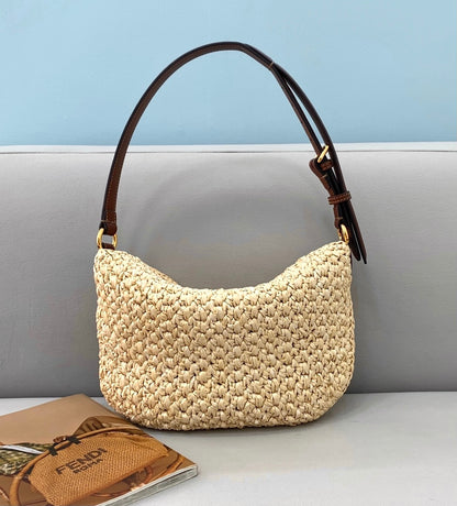 FND Small Croissant Hobo Bag Raffia For Women, Women’s Handbags, Shoulder Bags 11.4in/29cm FF 8BR790AFGJF1E1B