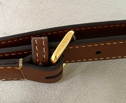 Small Croissant hobo bag made of natural-color woven straw finished with brown details. Decorated with an FF clasp. The bag can be carried by hand or worn on the shoulder thanks to the adjustable shoulder strap.