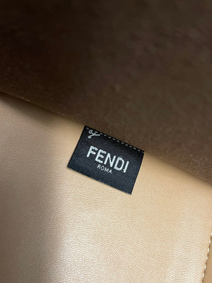 FND Sunshine Medium Brown FF jacquard fabric shopper Bag For Woman 31cm/12in